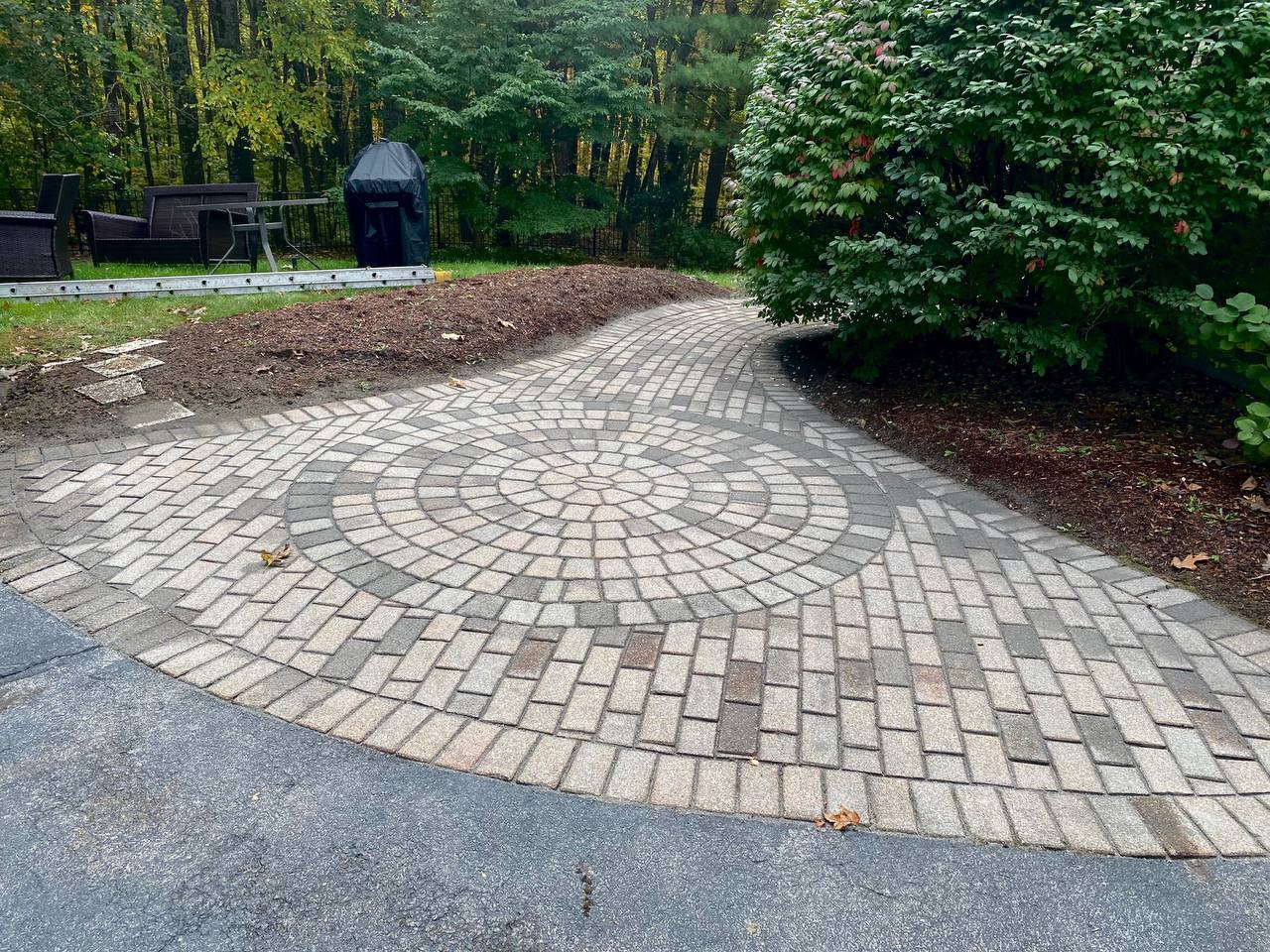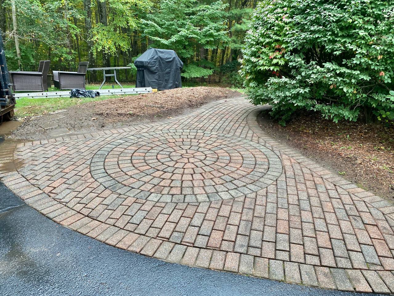 Refinishing old walkway and patio zone with power washer and new special sand